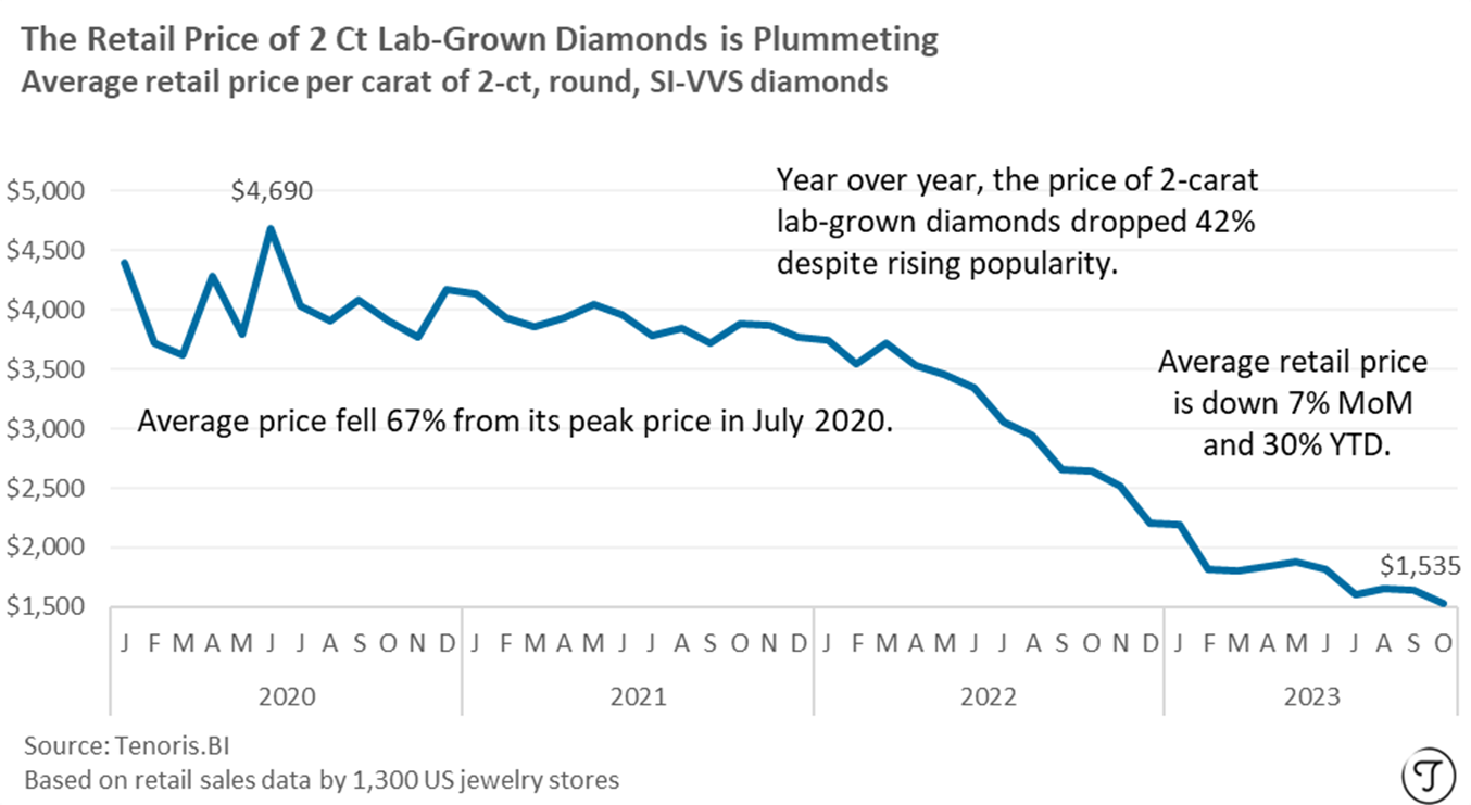 Technological Advancements: Improvements in lab-grown diamond production technology have made it possible to produce larger quantities of diamonds at lower costs, further driving down prices.